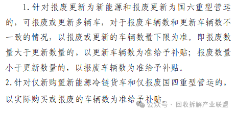 本實(shí)施細(xì)則對國四及以下排放標(biāo)準(zhǔn)老舊貨車和大中型客車報廢并更新為新能源車輛(以下簡稱“報廢更新為新能源”)的車主,僅新購置新能源冷鏈貨車、僅報廢國四排放標(biāo)準(zhǔn)老舊重型營運(yùn)貨車(以下簡稱“僅報廢國四重型營運(yùn)”)、國四排放標(biāo)準(zhǔn)老舊重型營運(yùn)貨車報廢并更新為國六排放標(biāo)準(zhǔn)重型營運(yùn)貨車(以下簡稱“報廢更新為國六重型營運(yùn)”)的業(yè)戶給予補(bǔ)貼。